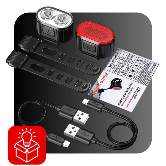 - Moc światła: przednia lampka 200 lm, tylna lampka 50 lm
