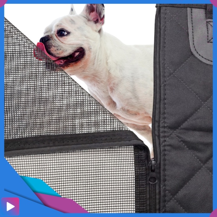 - Zamek błyskawiczny obok siateczki – pozwala na podróżowanie pasażera wraz z psem na tylnej kanapie.