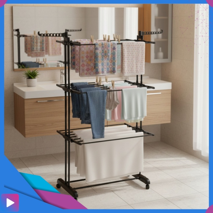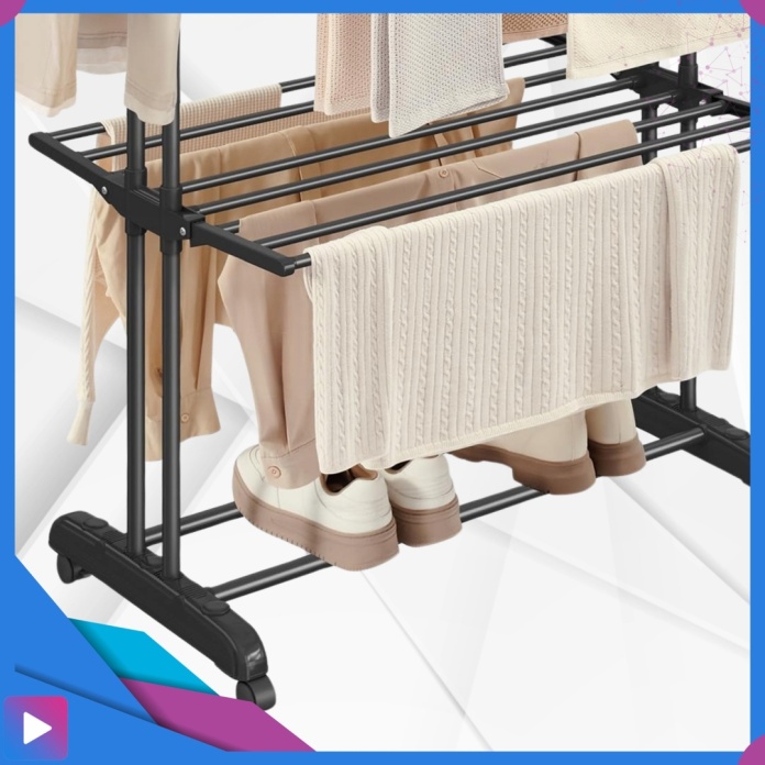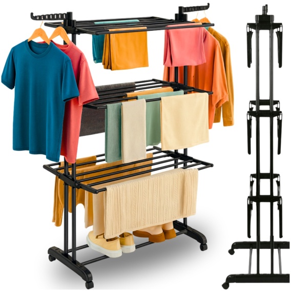 Dla każdego, kto chce suszyć więcej ubrań jednocześnie – trzy poziomy i dodatkowe ramiona robią różnicę.