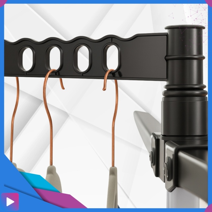 - Dostosowujesz przestrzeń do swoich potrzeb – składane półki i ramiona dają pełną elastyczność.