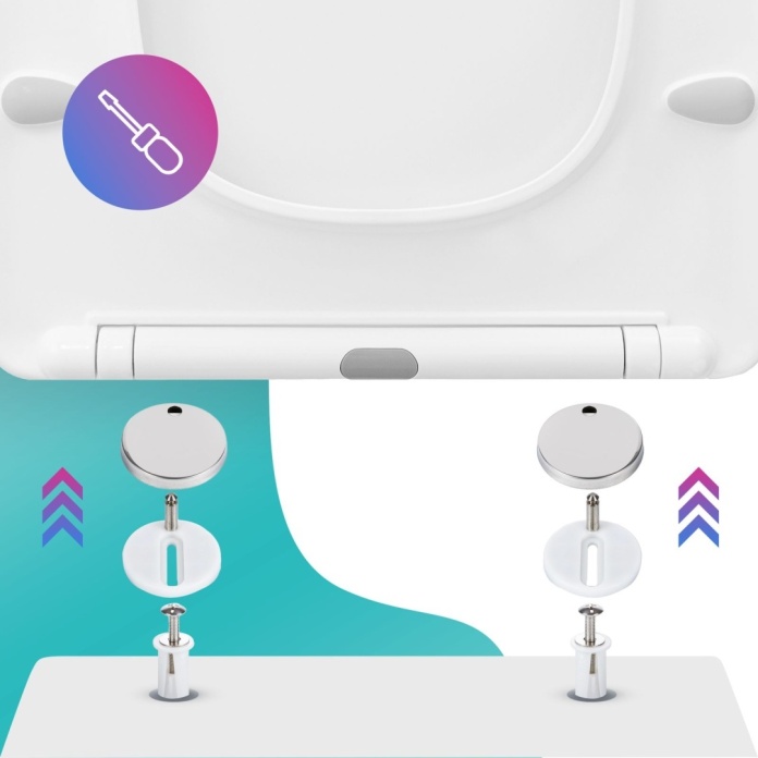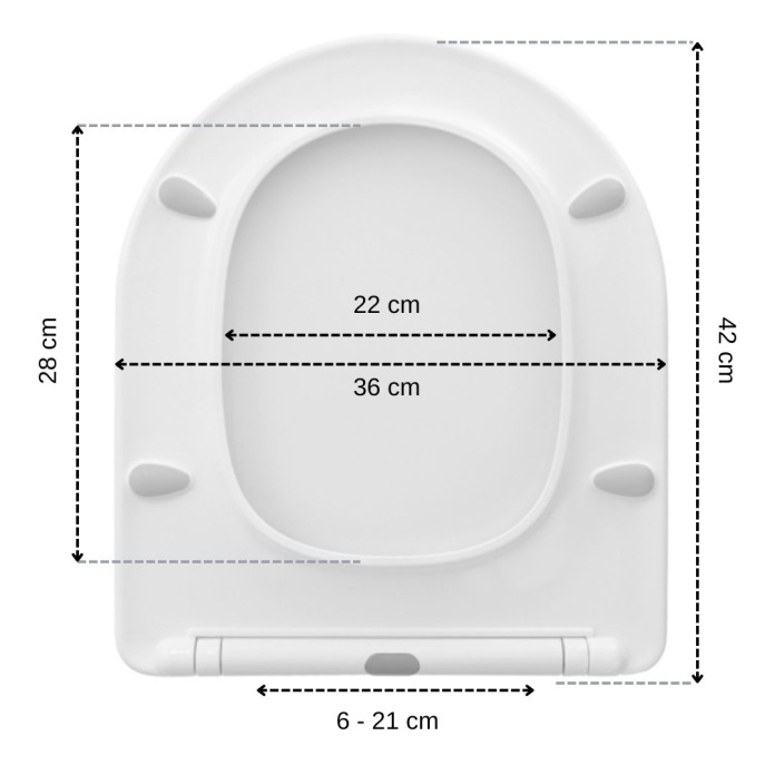 • Dopasowanie do większości toalet – uniwersalne wymiary i regulowany rozstaw śrub gwarantują łatwy montaż.
