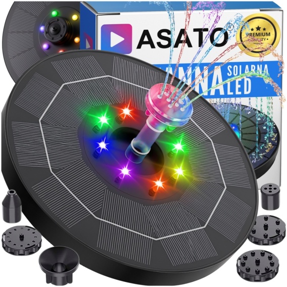 Fontanna Solarna Pływająca ASATO® LED RGB Do Oczek i Stawów
