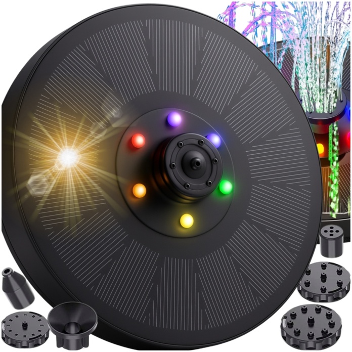 ✅ Zasilanie energią słoneczną | ✅ Kolorowe podświetlenie LED | ✅ 6 rodzajów strumieni
