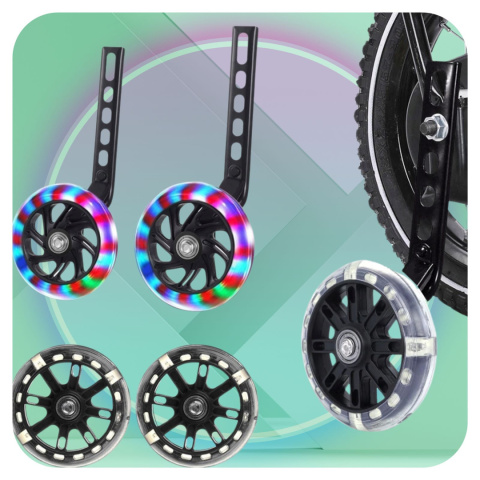 Kółka Boczne Do Roweru dla Dziecka Dziecięcego Świecące Regulacja Wysokości Wielokolorowe