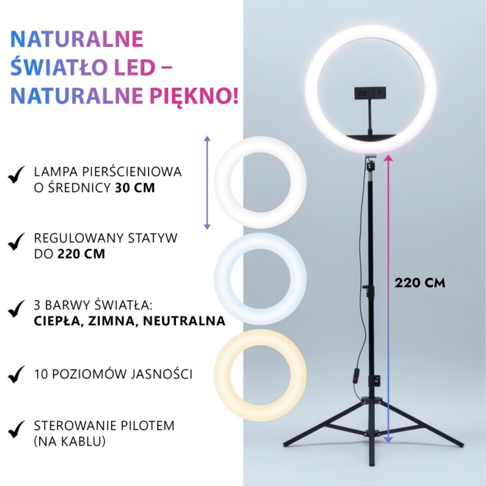 LAMPA PIERŚCIENIOWA LED 30 CM ZE STATYWEM ASATO ®
