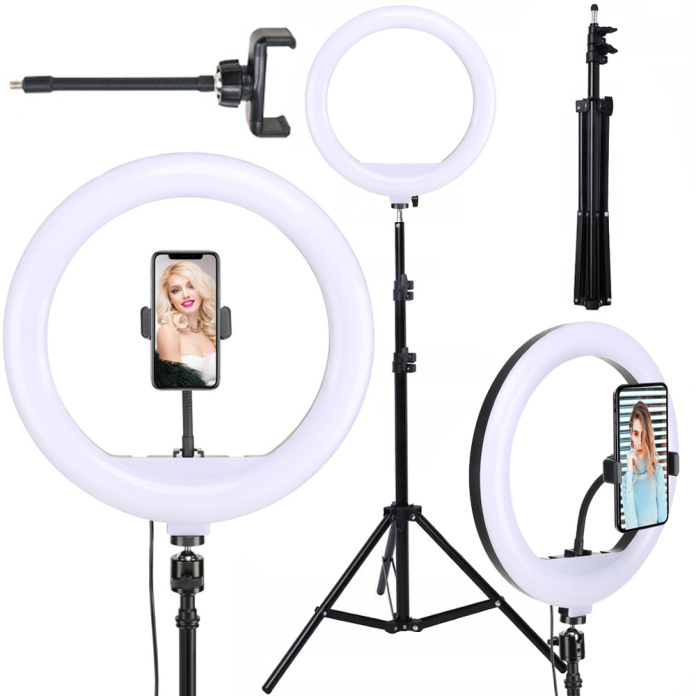 • Lampa pierścieniowa LED (30 cm) z przewodem USB i pilotem