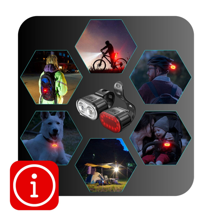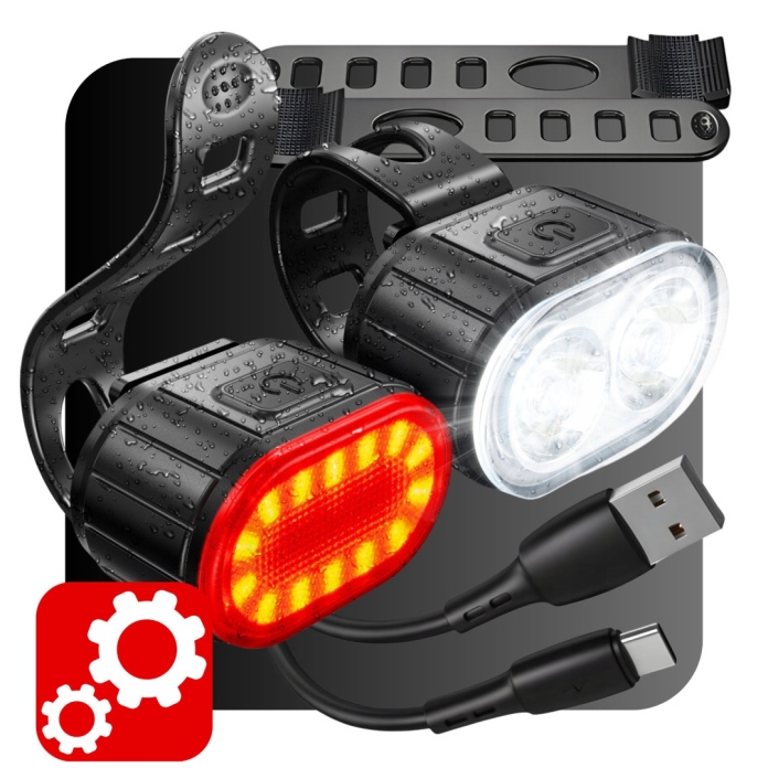 - Moc światła: przednia lampka 200 lm, tylna lampka 50 lm