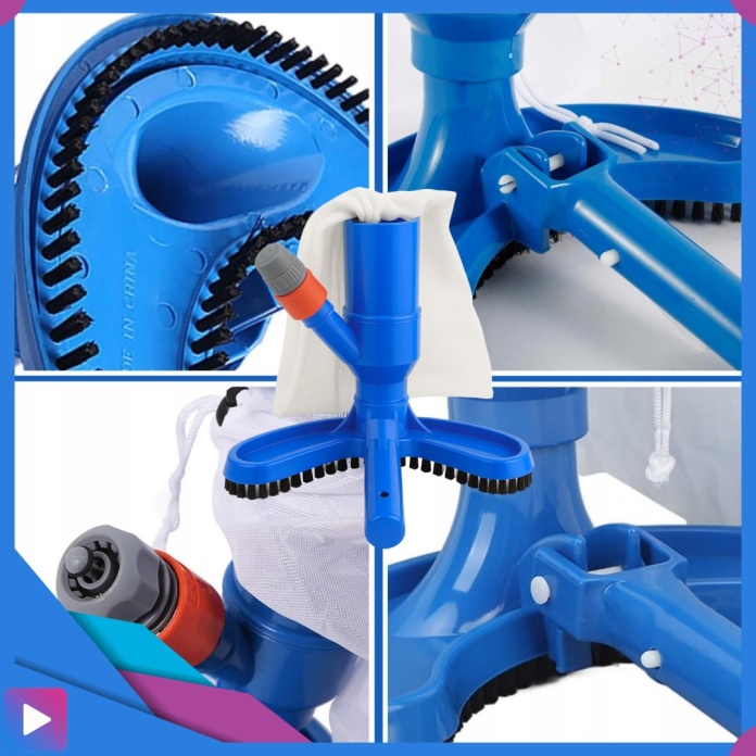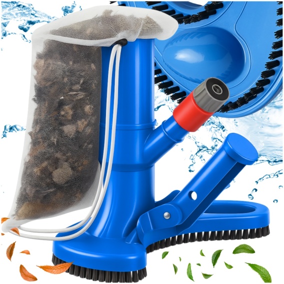 1x Końcówka czyszcząca z wbudowanymi szczotkami 1x Siatka filtracyjna na zanieczyszczenia 1x Złączka do węża ogrodowego 1x Uchwyt montażowy 1x Element odkurzacza do montażu złączki i siatki